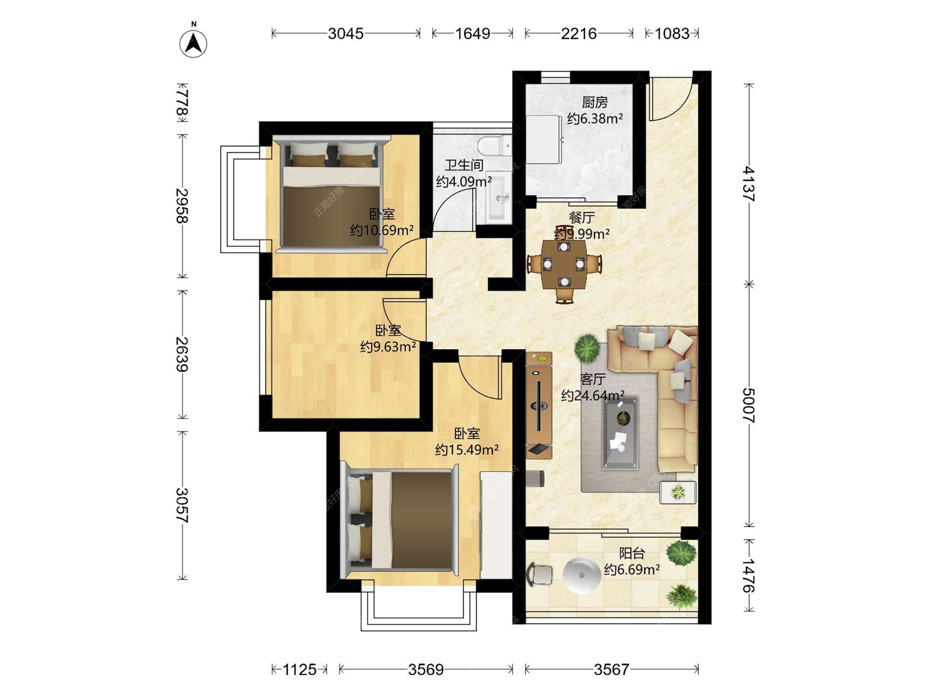 3房2厅1卫