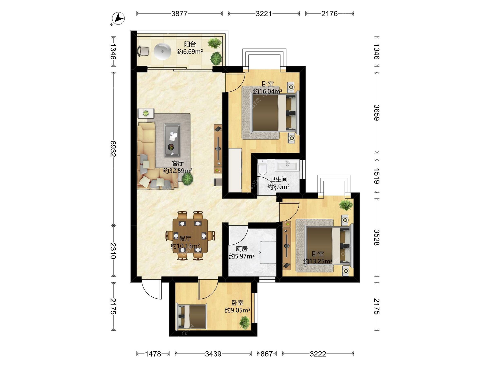3房2厅1卫