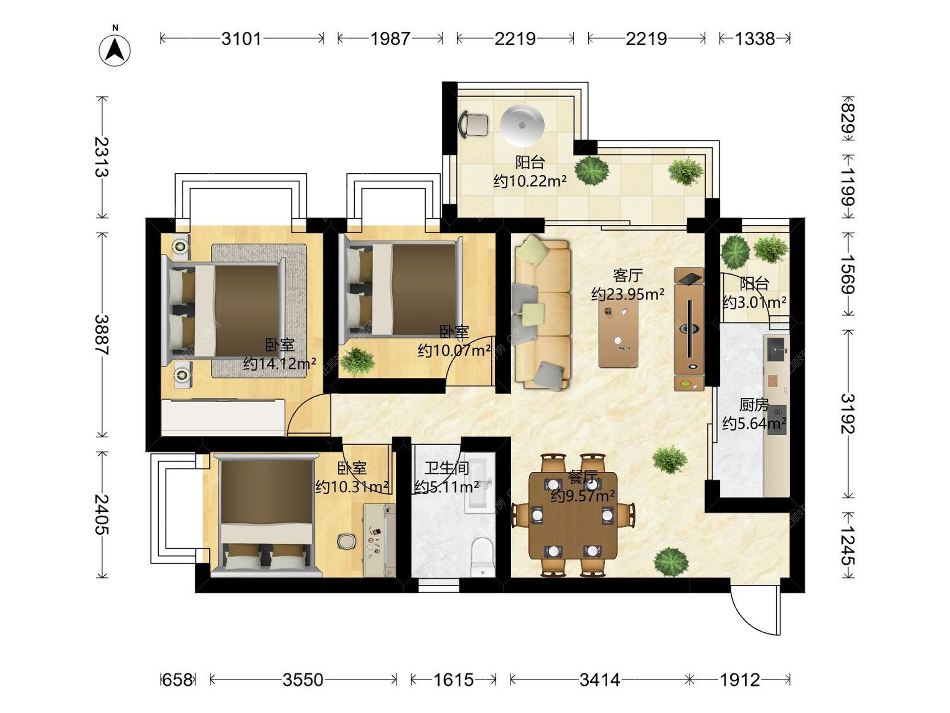 3房2厅1卫