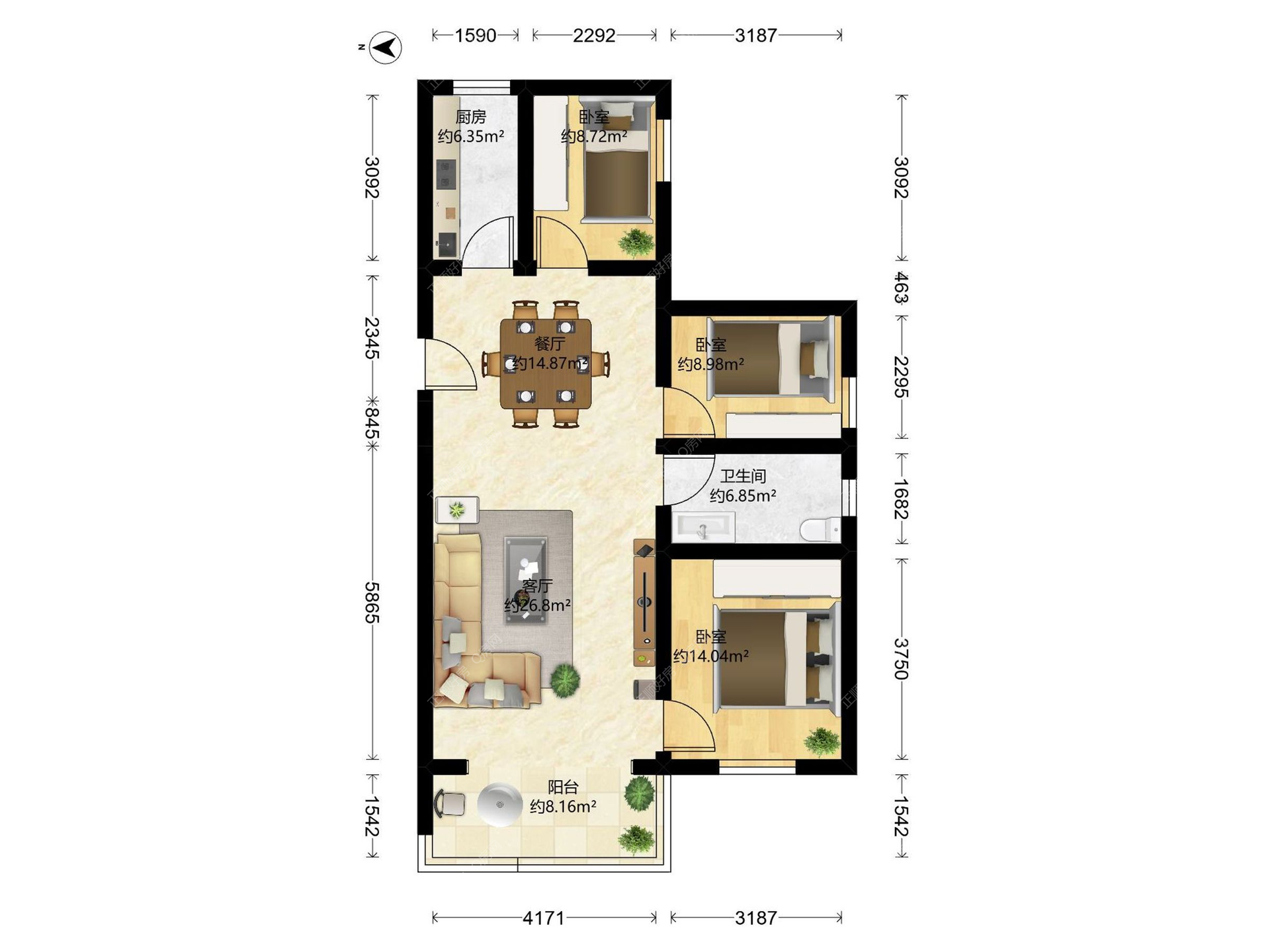 3房2厅1卫