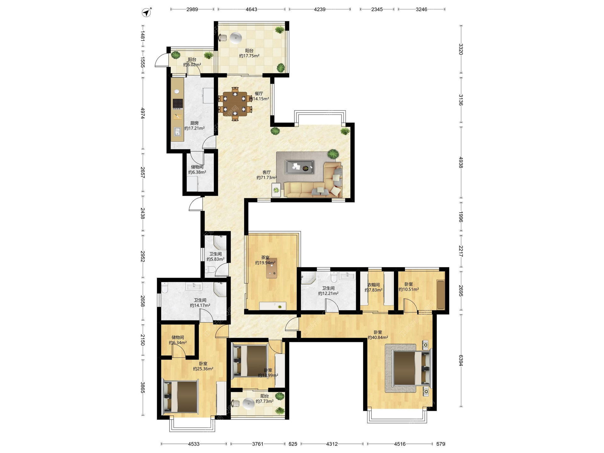 南湾 华发新城五期 298㎡ 5房2厅 南北通 一线河景 厅大房大