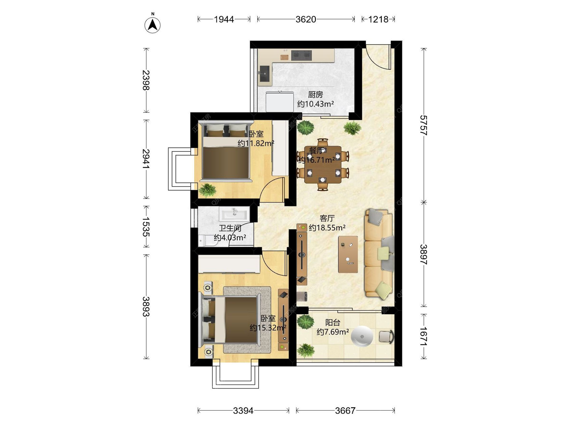 2房2厅1卫