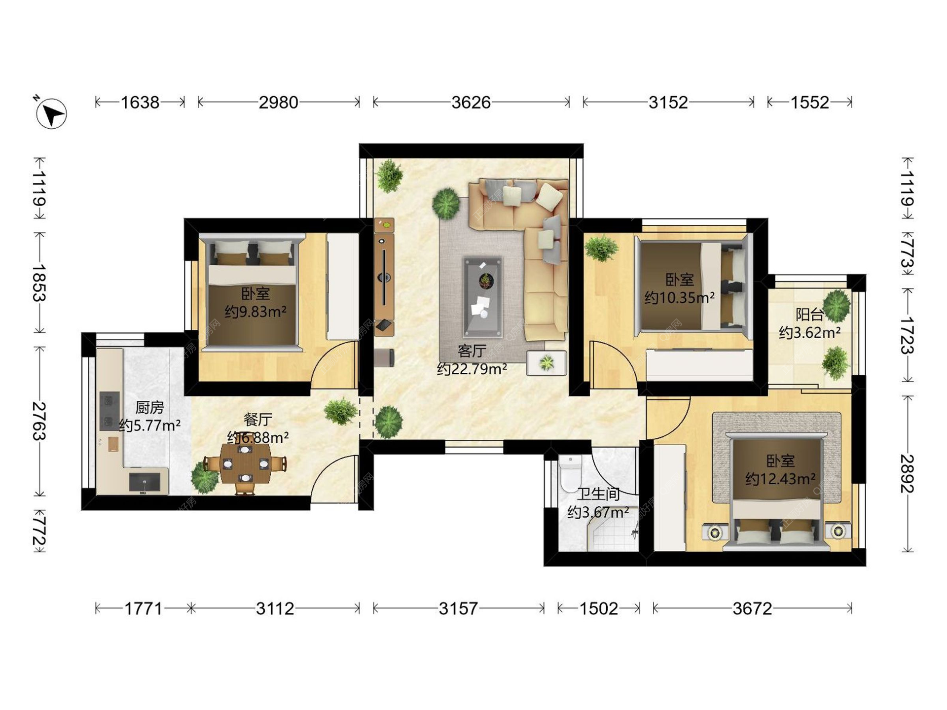 3房2厅1卫