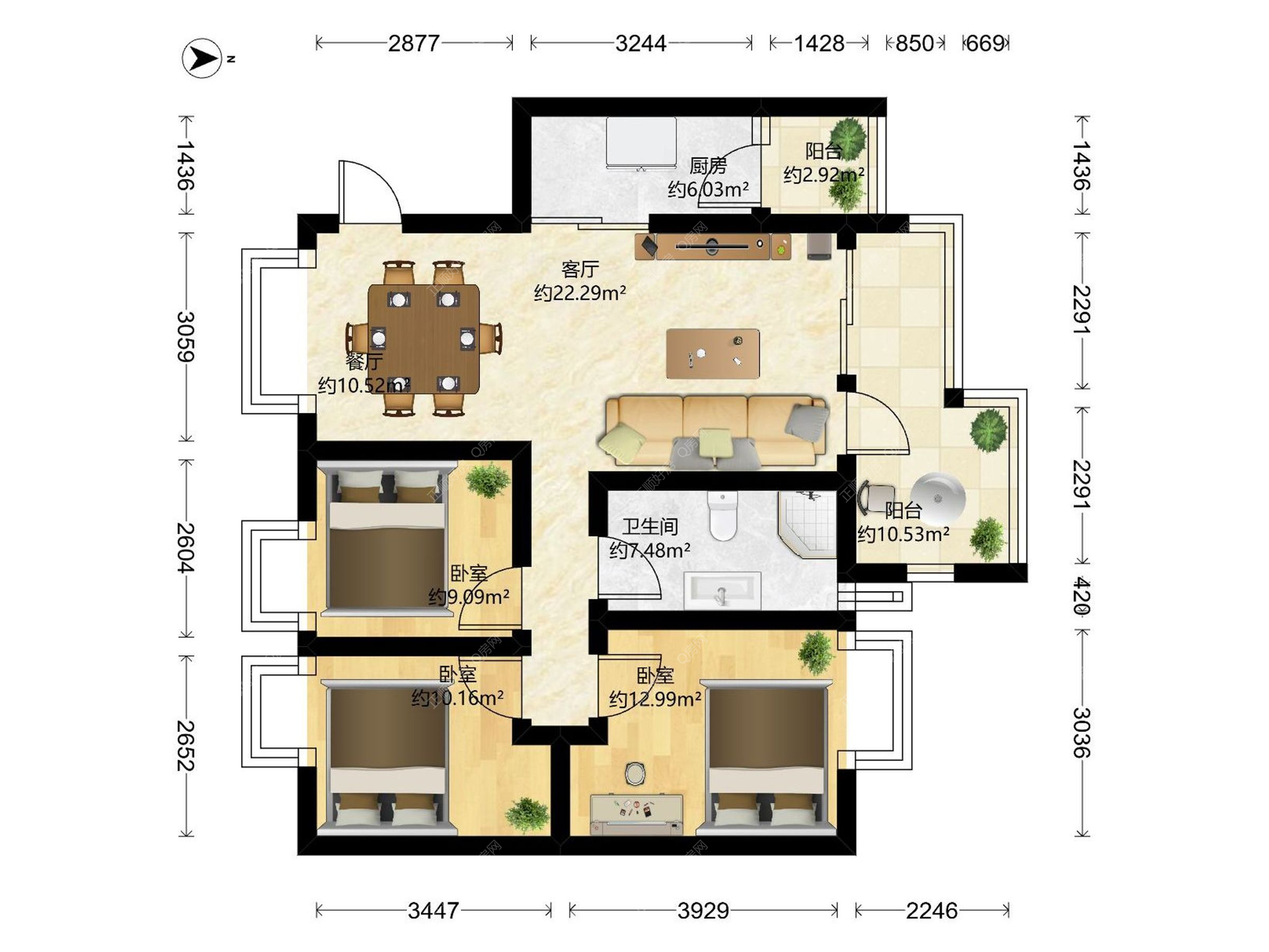 3房2厅1卫