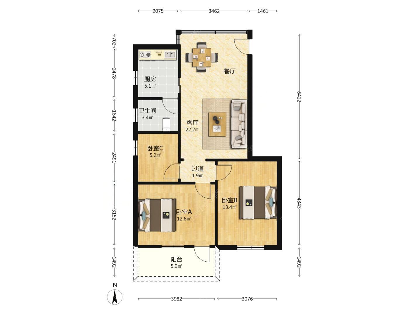 3房2厅1卫