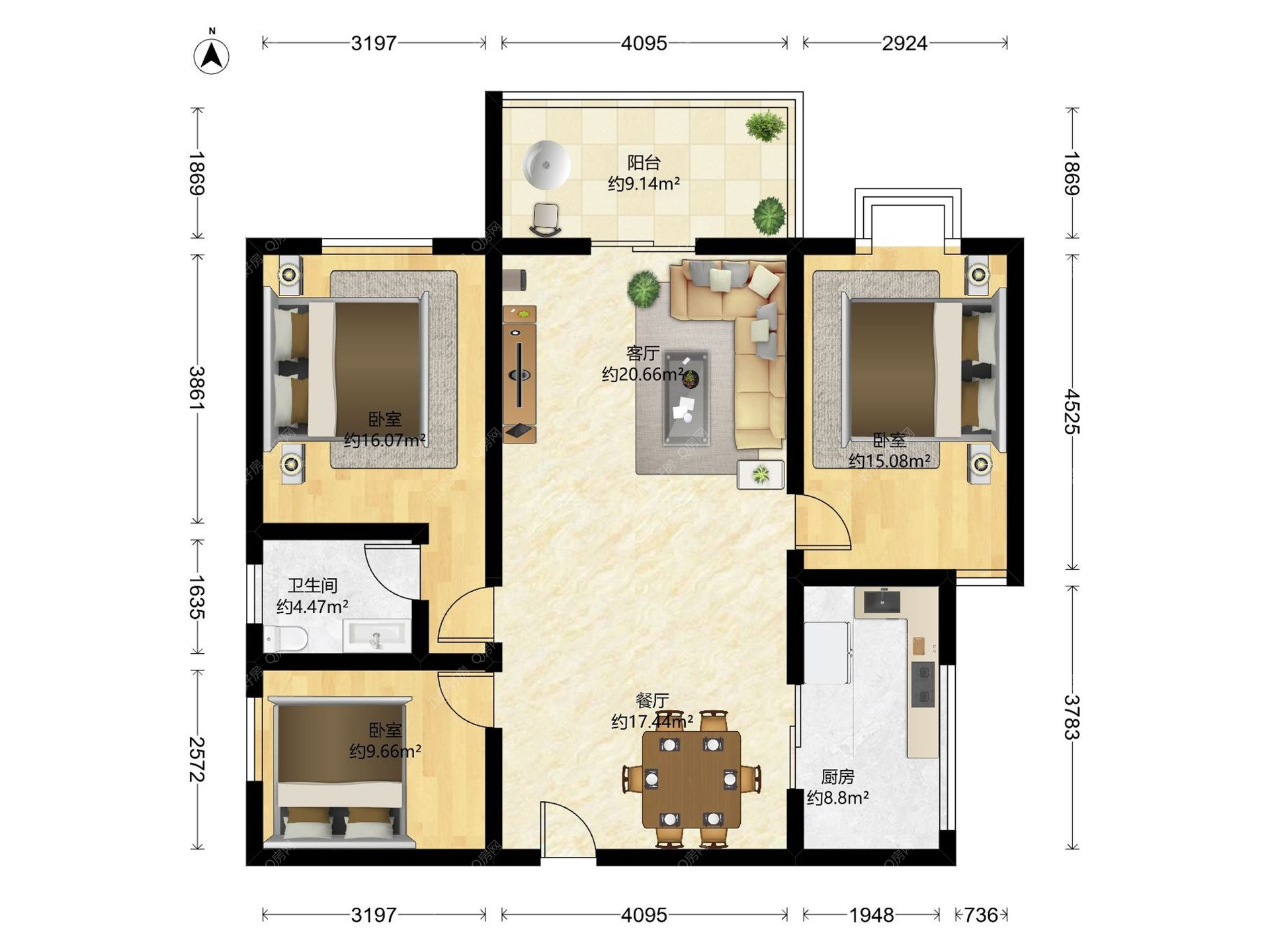 3房2厅1卫