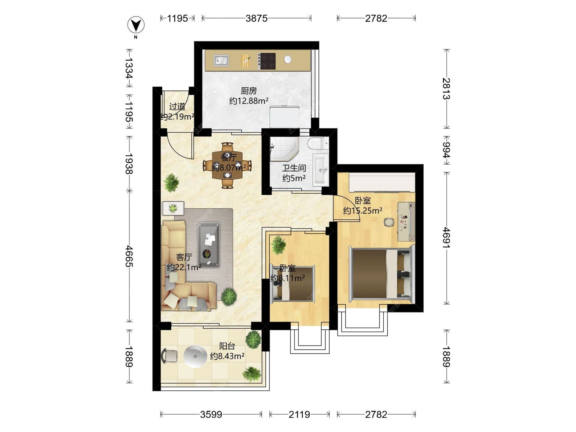 2房2厅1卫