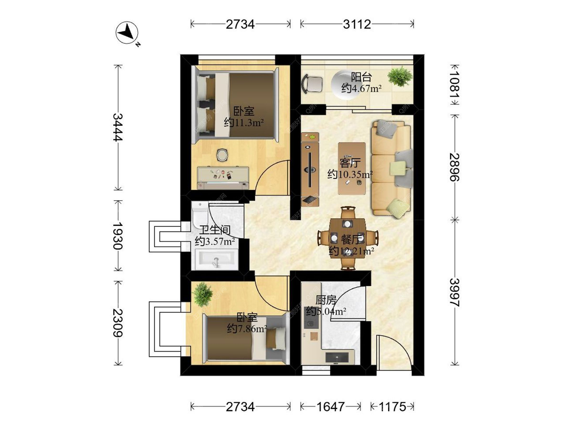 2房1厅1卫