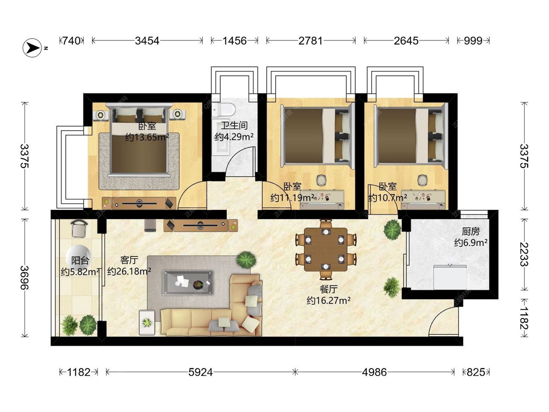 3房2厅1卫