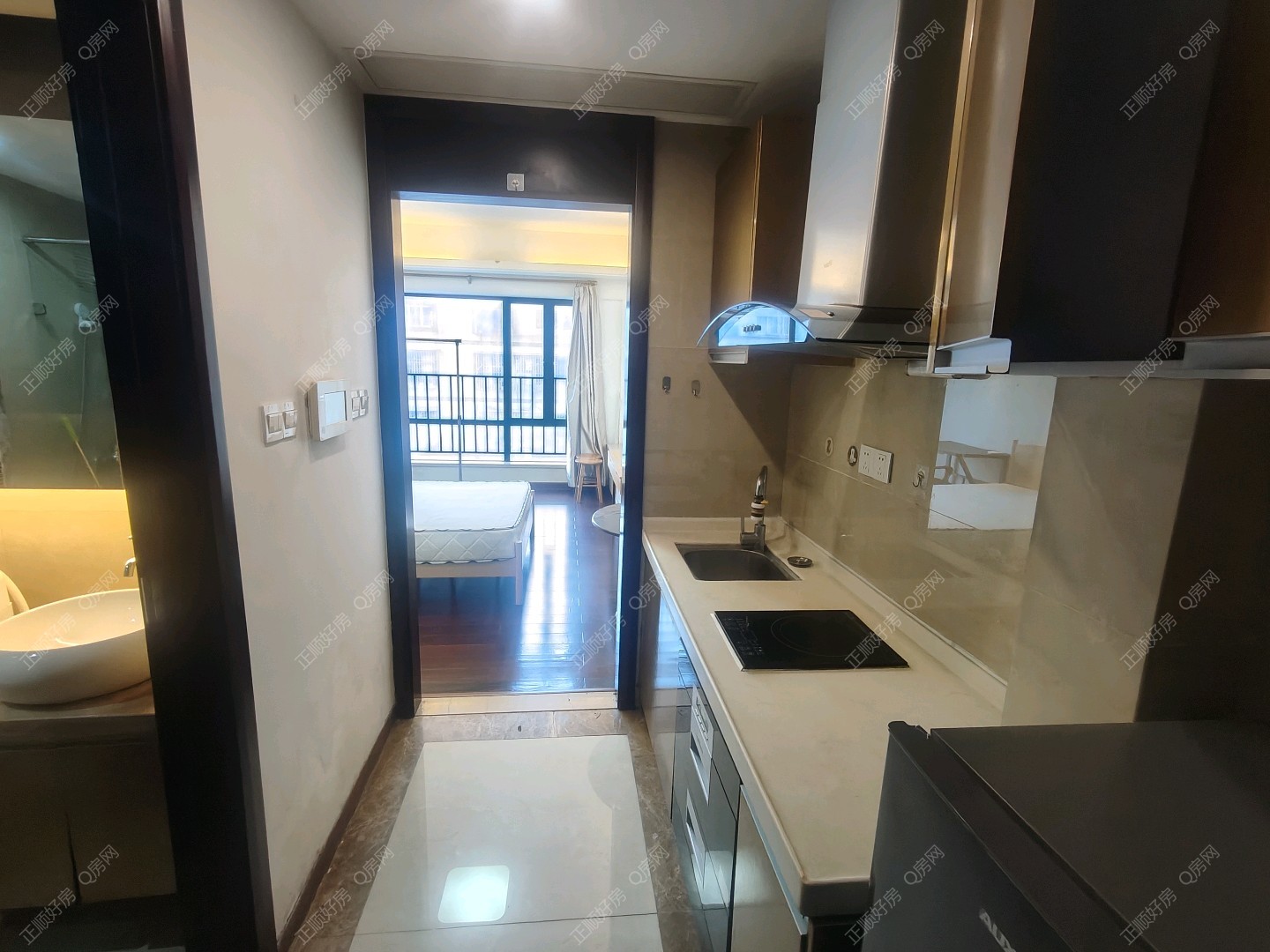 【户型优势】 一房一卫带开放式厨房 阳台朝西北在内街 通风采光都很好