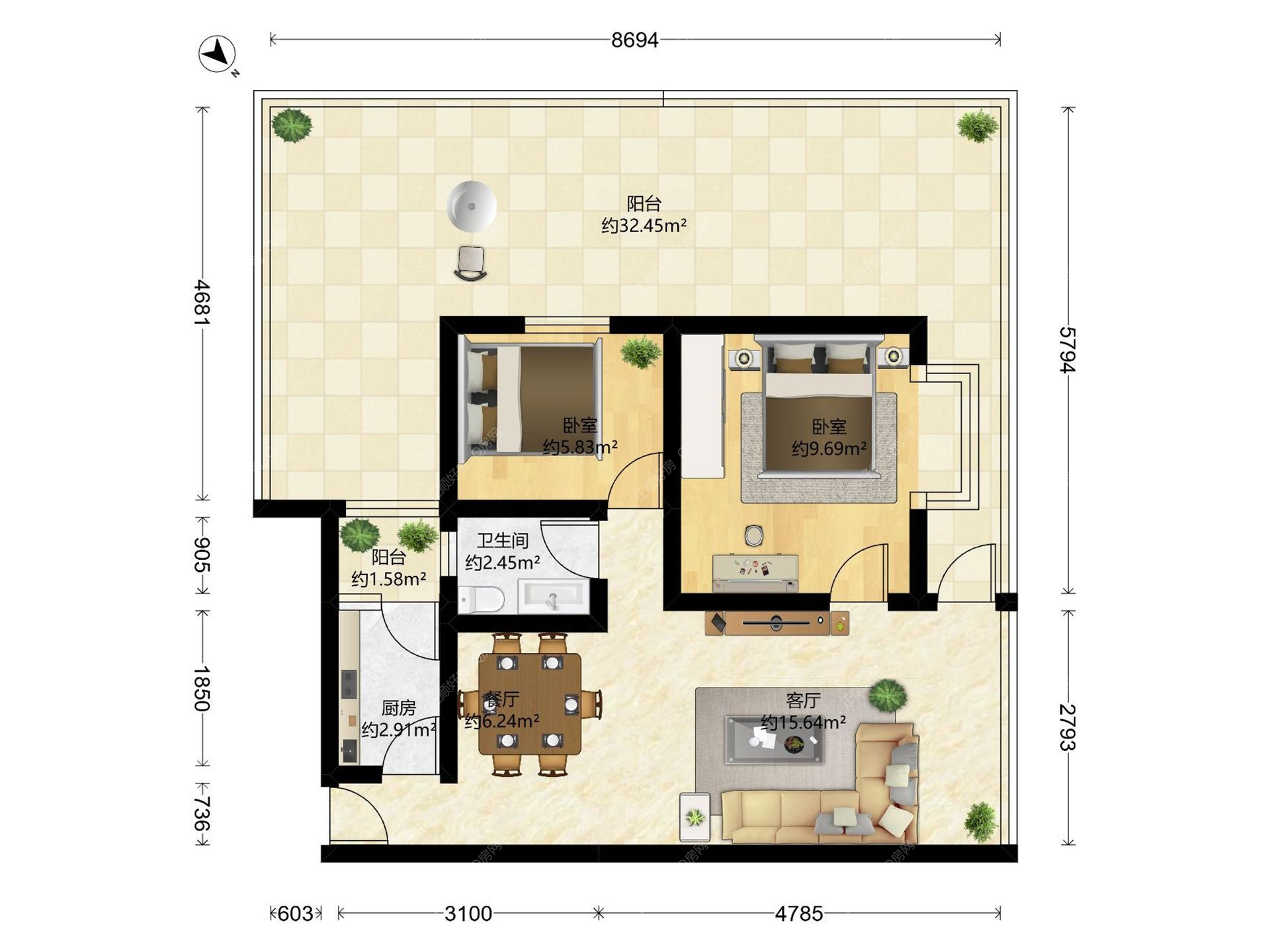 2房2厅1卫