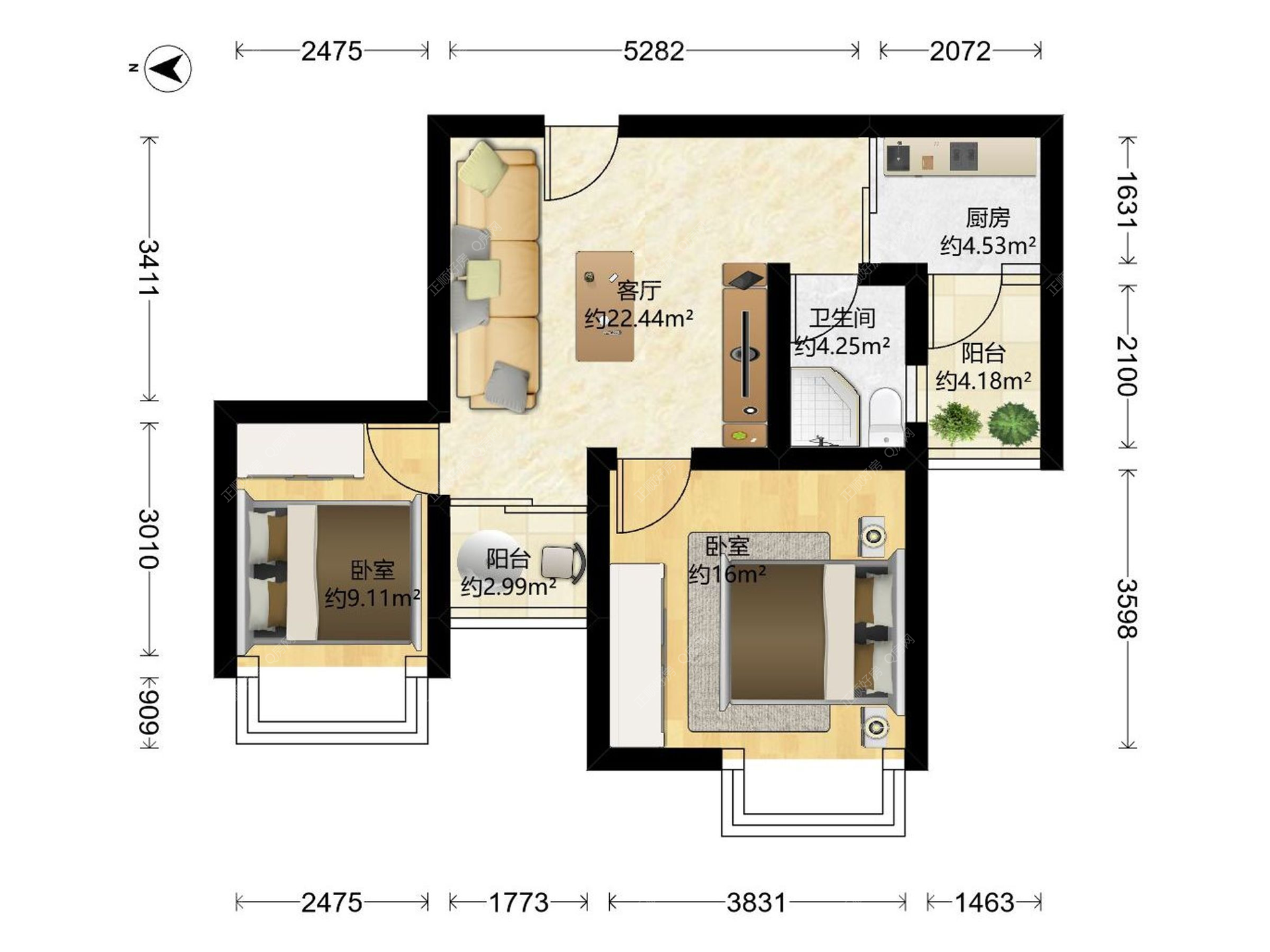2房2厅1卫