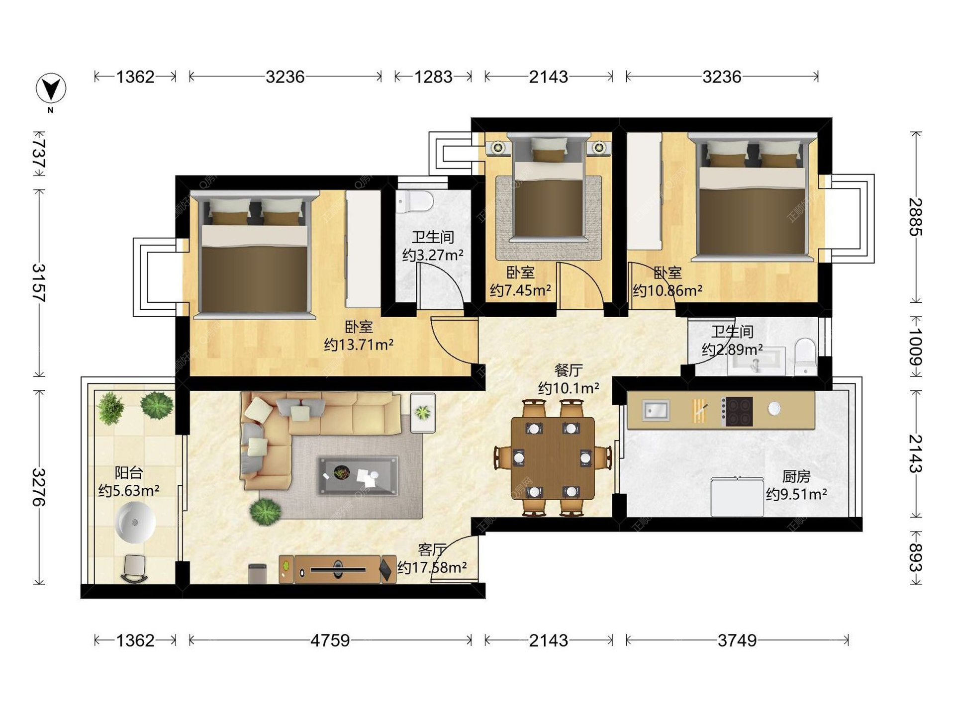 3房2厅1卫