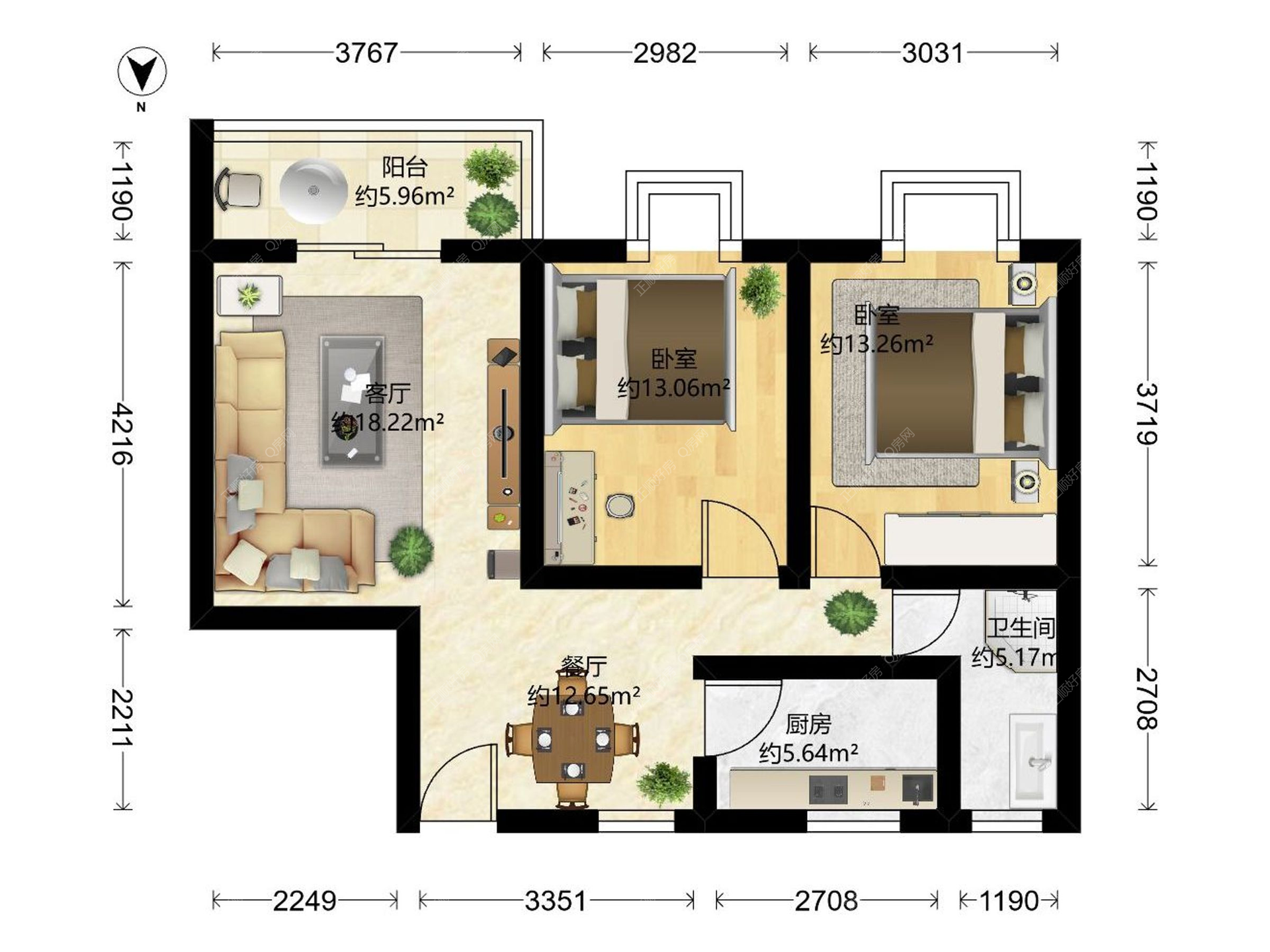 2房2厅1卫