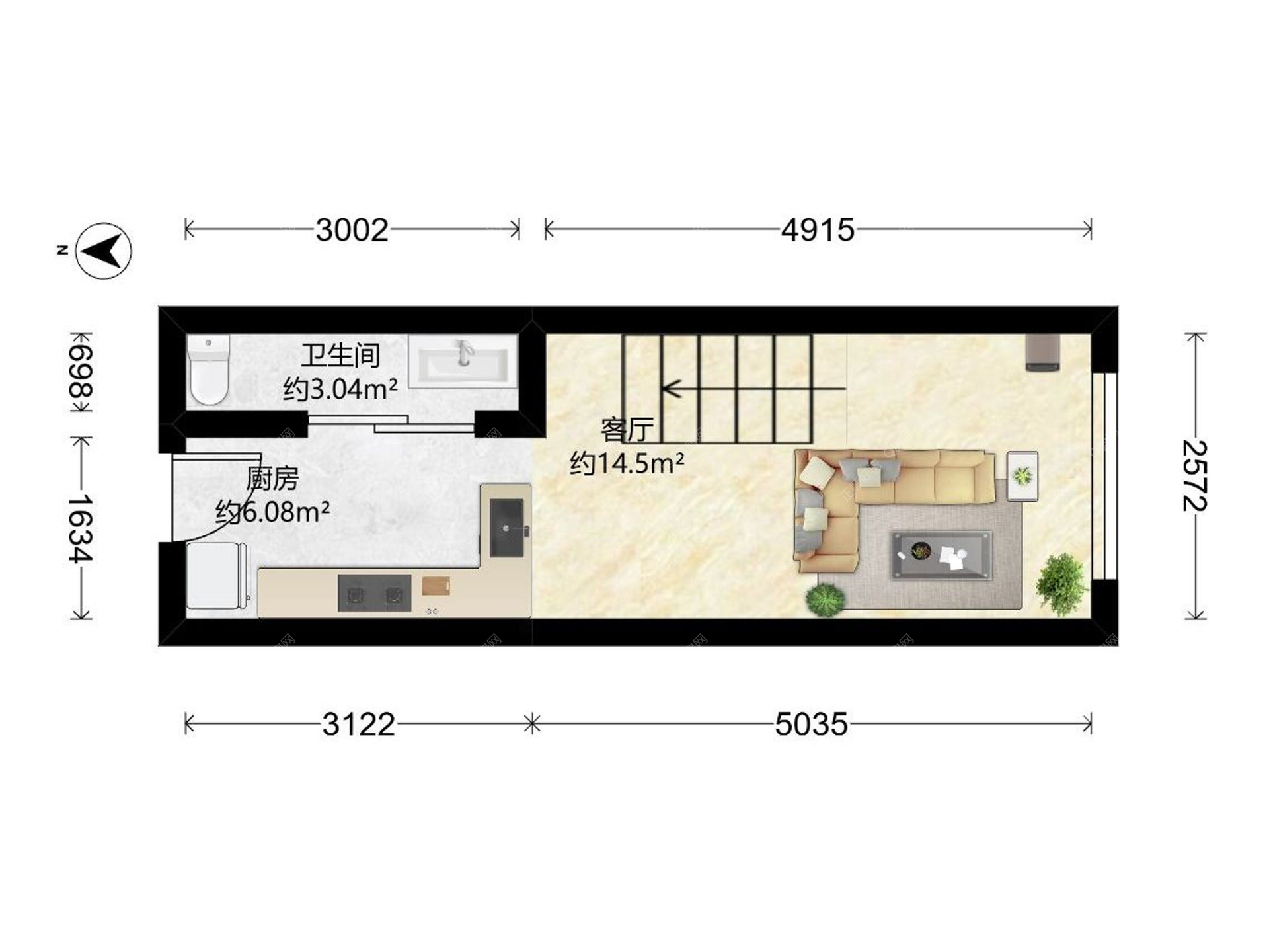 高新 龙湖天玺 38㎡ 2房2厅 东向
