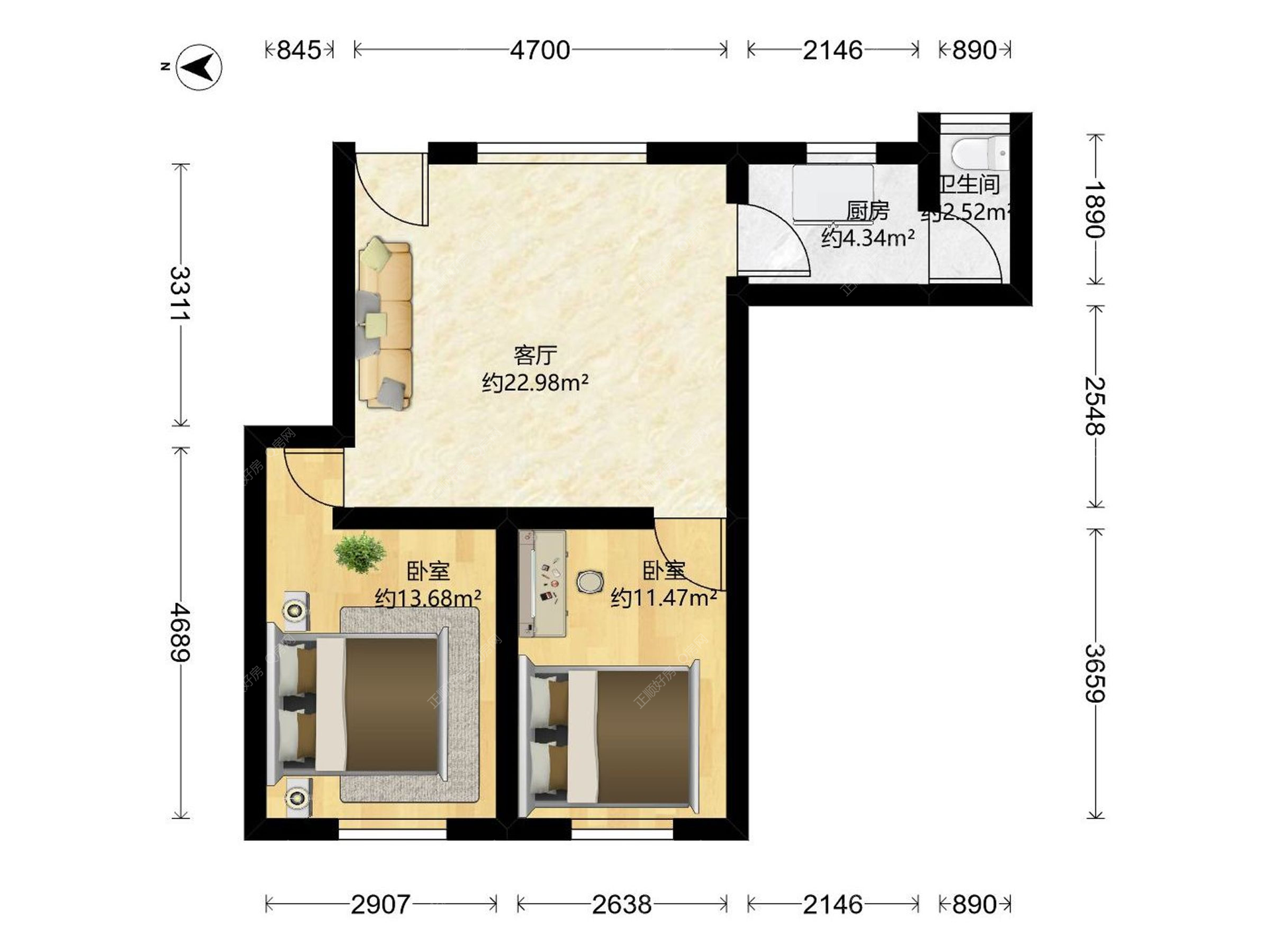 2房2厅1卫